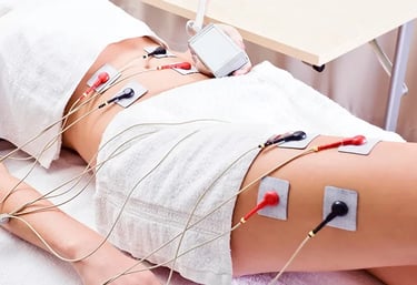 Utiliza correntes elétricas de baixa frequência para estimular os músculos e nervos.